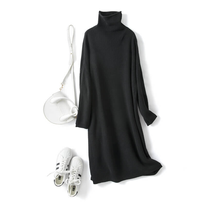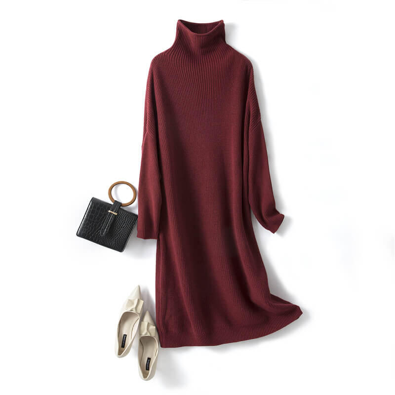 Denne smukke sweaterkjole i kraftig uld er lavet med en kombination af morbærsilke og cashmere garn.