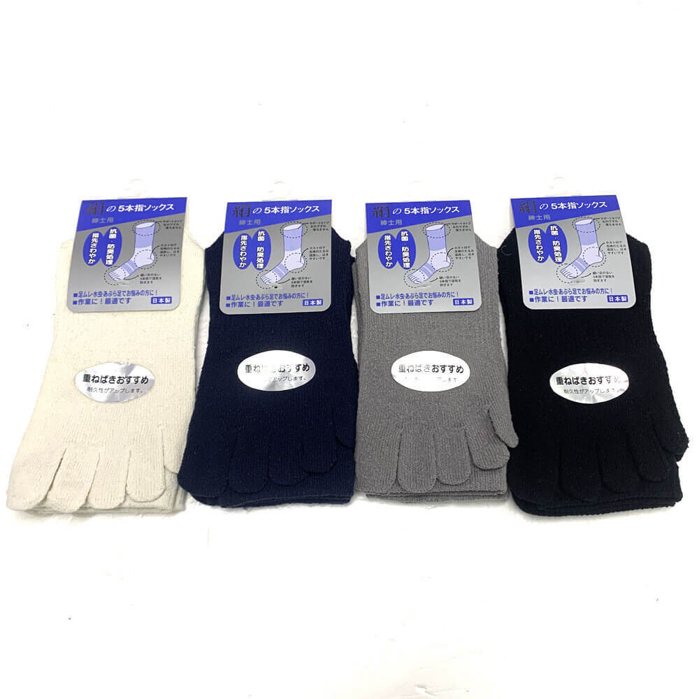 Fantastiske silke tåsokker fremstillet i Japan af den fineste naturlige silke. De føles som små silkehandsker til dine fødder og kan bruges året rundt — kølige og åndbare om sommeren, varme og behagelige om vinteren.